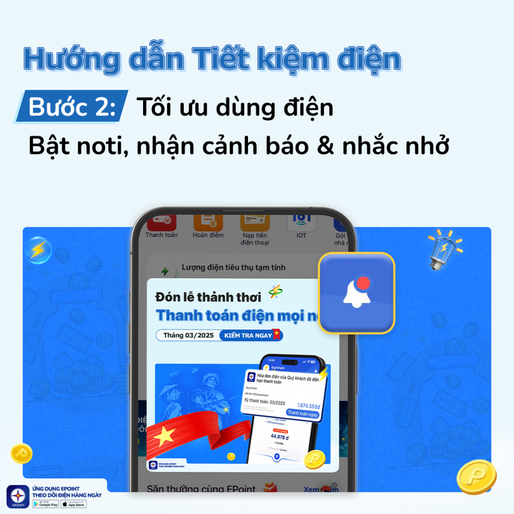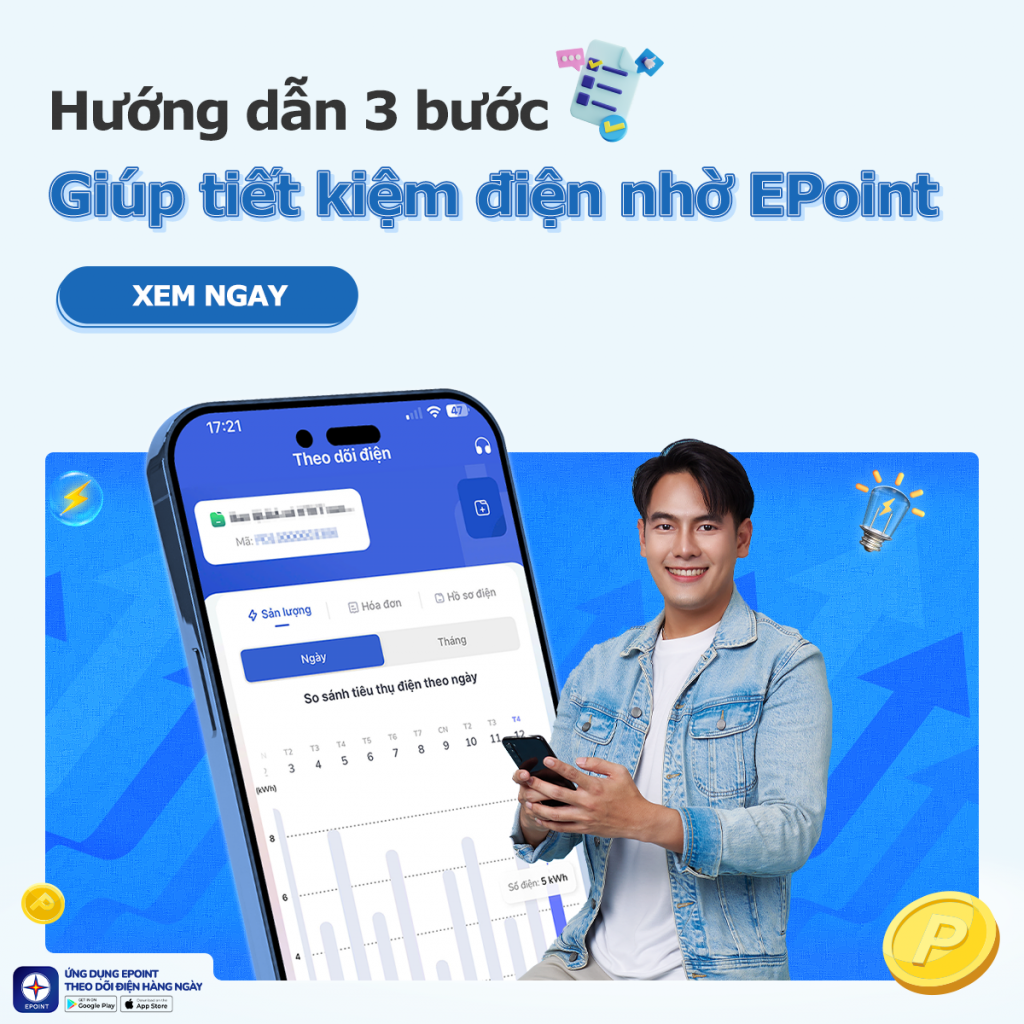 Tiết kiệm điện chưa bao giờ dễ dàng hơn với EPoint! Chỉ với 3 bước đơn giản, quý khách có thể theo dõi, tối ưu và thanh toán hóa đơn điện hiệu quả, giúp giảm chi phí hàng tháng.
