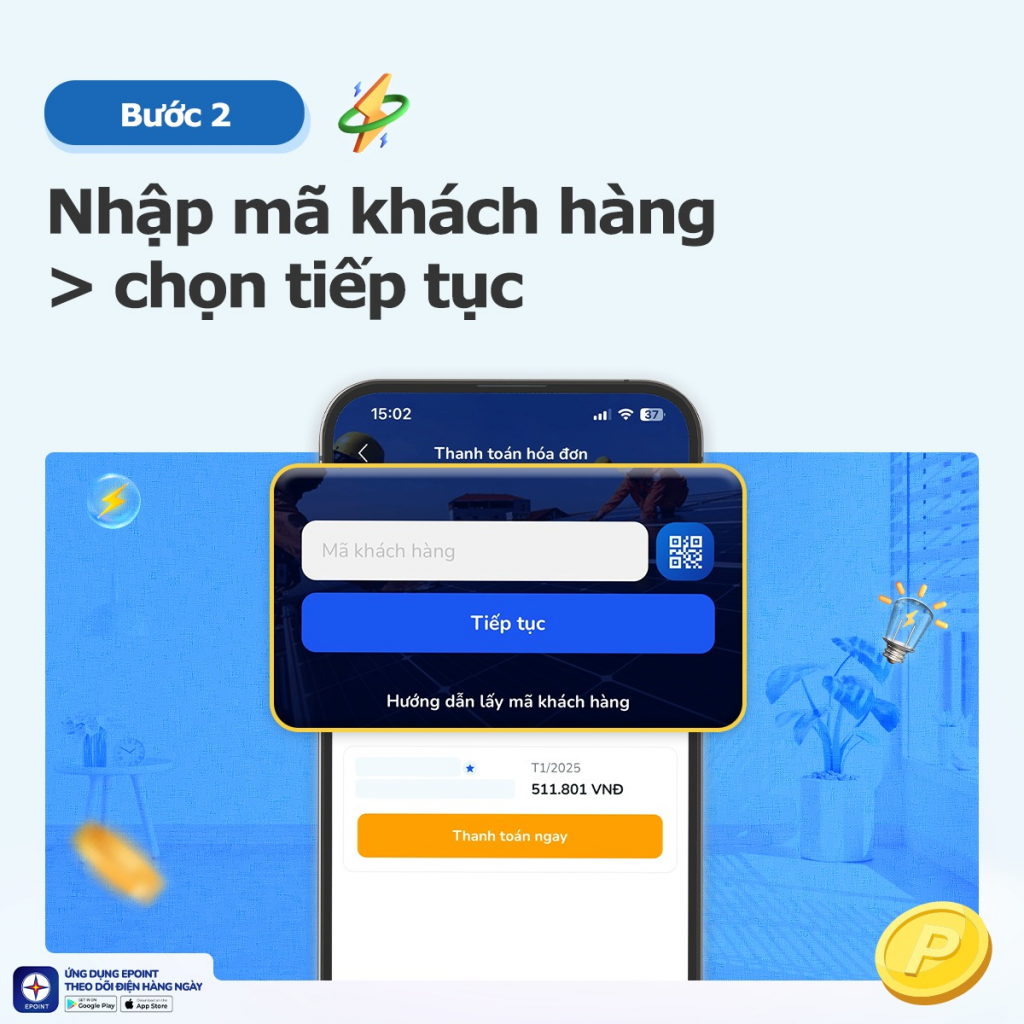 Ứng dụng EPoint là đối tác tin cậy của Tập đoàn Điện lực Việt Nam (EVN), cung cấp giải pháp kiểm tra và thanh toán hóa đơn điện an toàn, minh bạch và tiện lợi. Với sự tin dùng của hàng triệu khách hàng, EPoint cam kết mang đến trải nghiệm tốt nhất trong việc quản lý và thanh toán điện năng. Để tải ứng dụng EPoint, Quý khách vui lòng truy cập: https://epoint.page.link/EPFanpage